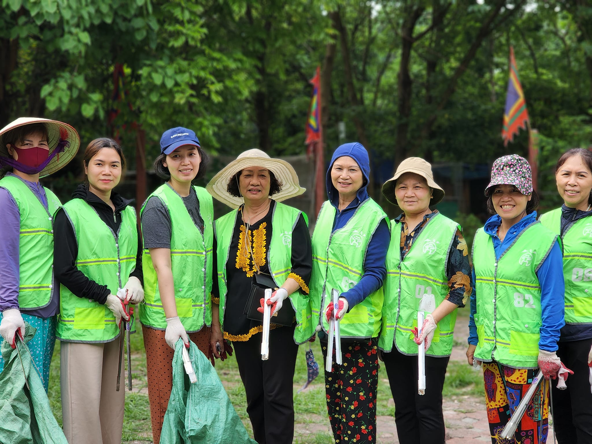 In the heat of 31°C, the clean-up was joined by volunteers of all ages from Hanoi and other localities with support from the People's Committee of Chuong Duong Ward and partners. Everyone rolled up their sleeves and headed to the main spots to clean up.