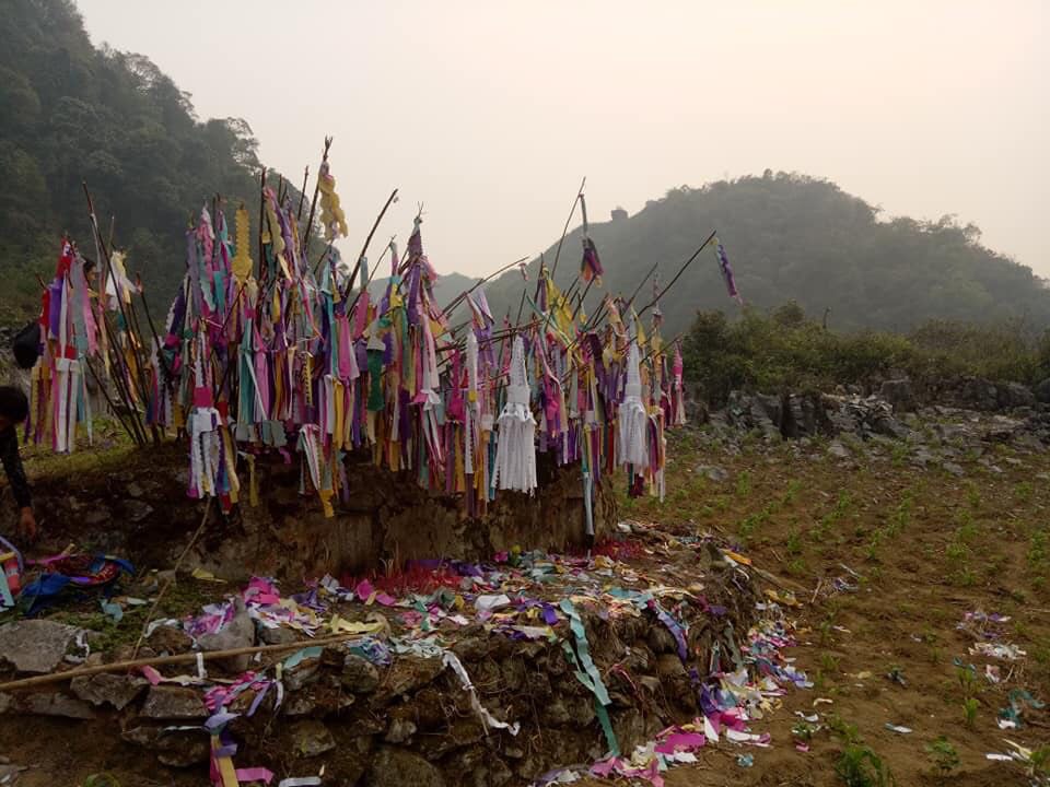 Before the grave visiting day, Dao people clean up the graves, set up small trees and hang colorful paper flags. Then, they place offerings on the graves and pray for a year of happiness and good luck.