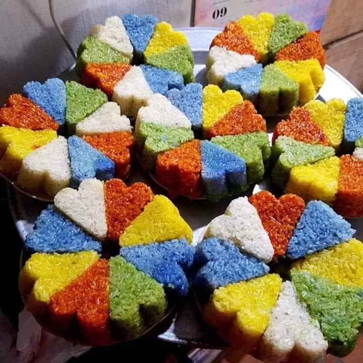 Five-colored sticky rice is made for grave visiting festival |