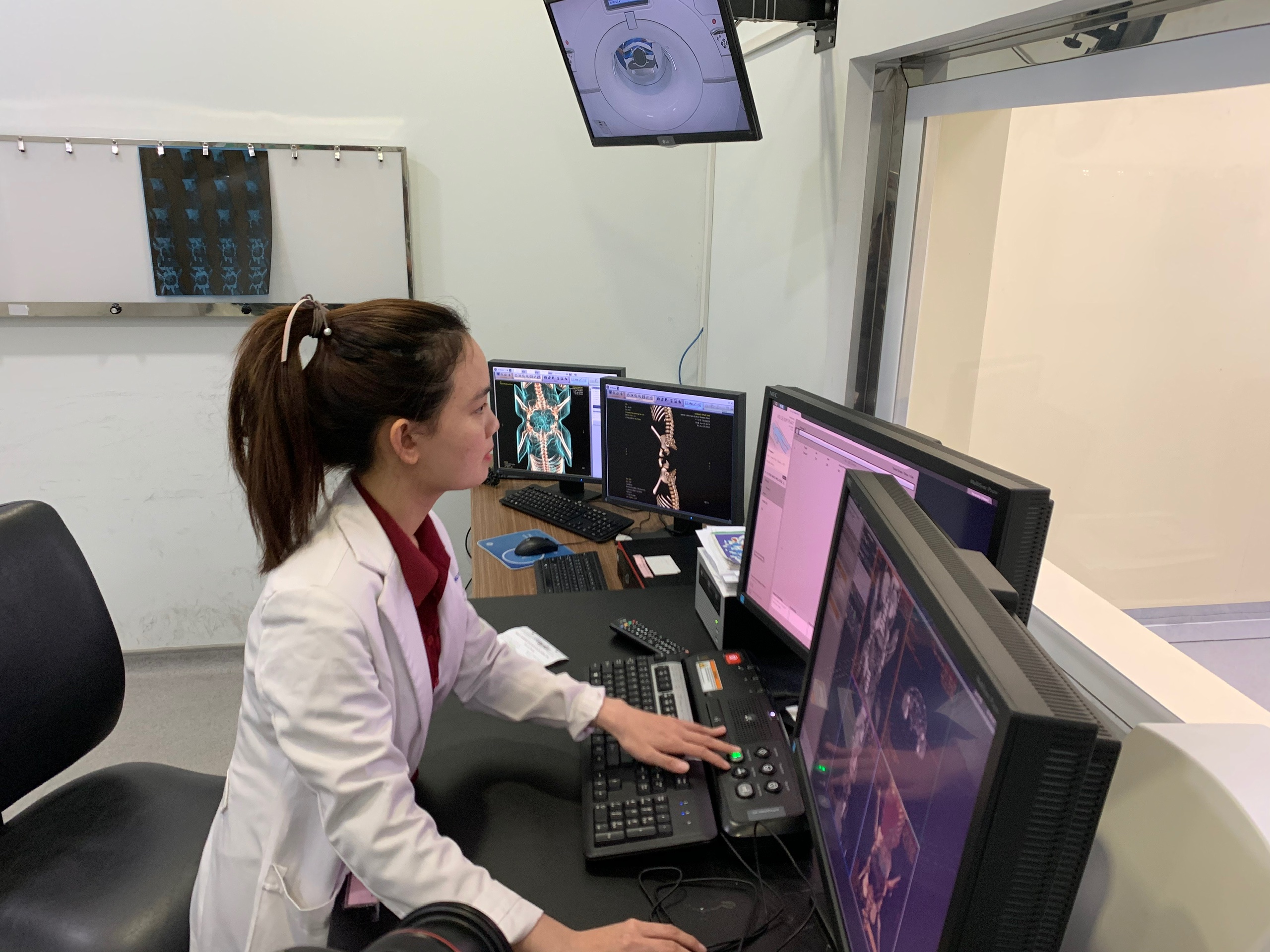 Born at Hung Vuong Hospital, the twins were transferred to the HCMC Children’s Hospital to be raised and monitored. 29-year-old doctor Nguyen Ngoc Minh Khanh of the Department of Diagnostic Imaging has worked on their case since they were three months old. Khanh was in charge of analyzing images and providing consultation for the big surgery to separate the two babies. She was baffled when she saw the twins’ strange body structure for the first time. Khanh couldn’t help feeling shocked and sad as she couldn’t imagine how the two babies could live in symbiosis. The young doctor spent sleepless nights studying the films and X-rays of the twins, and used ultrasound to locate their bladder, uterus, and vagina.