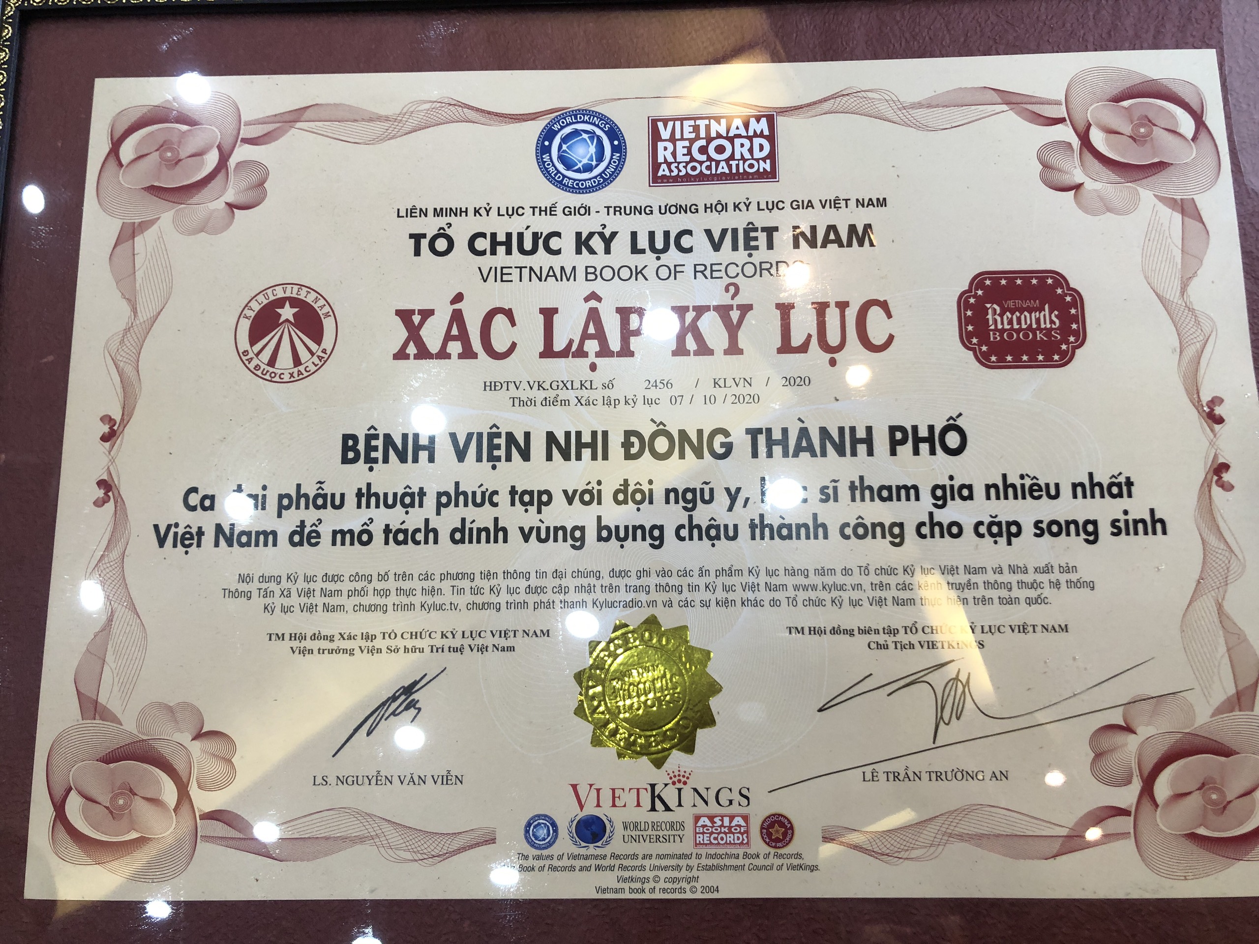Ho Chi Minh City’s Health Department awarded a certificate to the surgical team for setting a Vietnamese record: completing the most complicated surgery ever to separate conjoined twins.