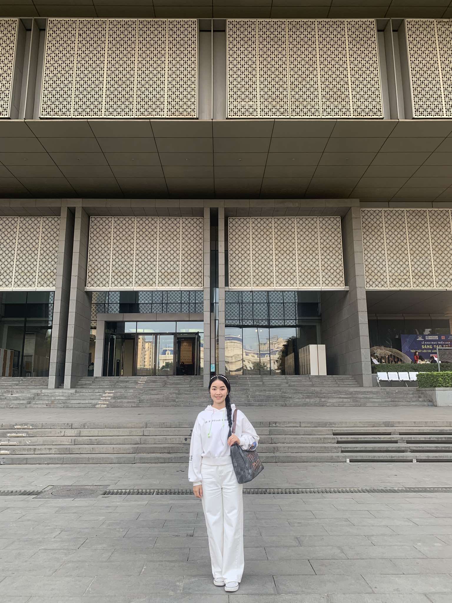 Haram said, "In South Korea, it takes about 3 hours a day to commute back and forth from home to school, and when I get on the train, I just sleep, so I didn’t really like it. In Vietnam, the traffic is a bit crazy, but I’m still confident zooming around, going to school, and heading to the city. When I’m on the back of someone else’s bike, I feel more nervous, but when I’m riding myself, I feel much more relaxed and at ease." Palai at the Hanoi Museum (Photo: Phuong Thao) |