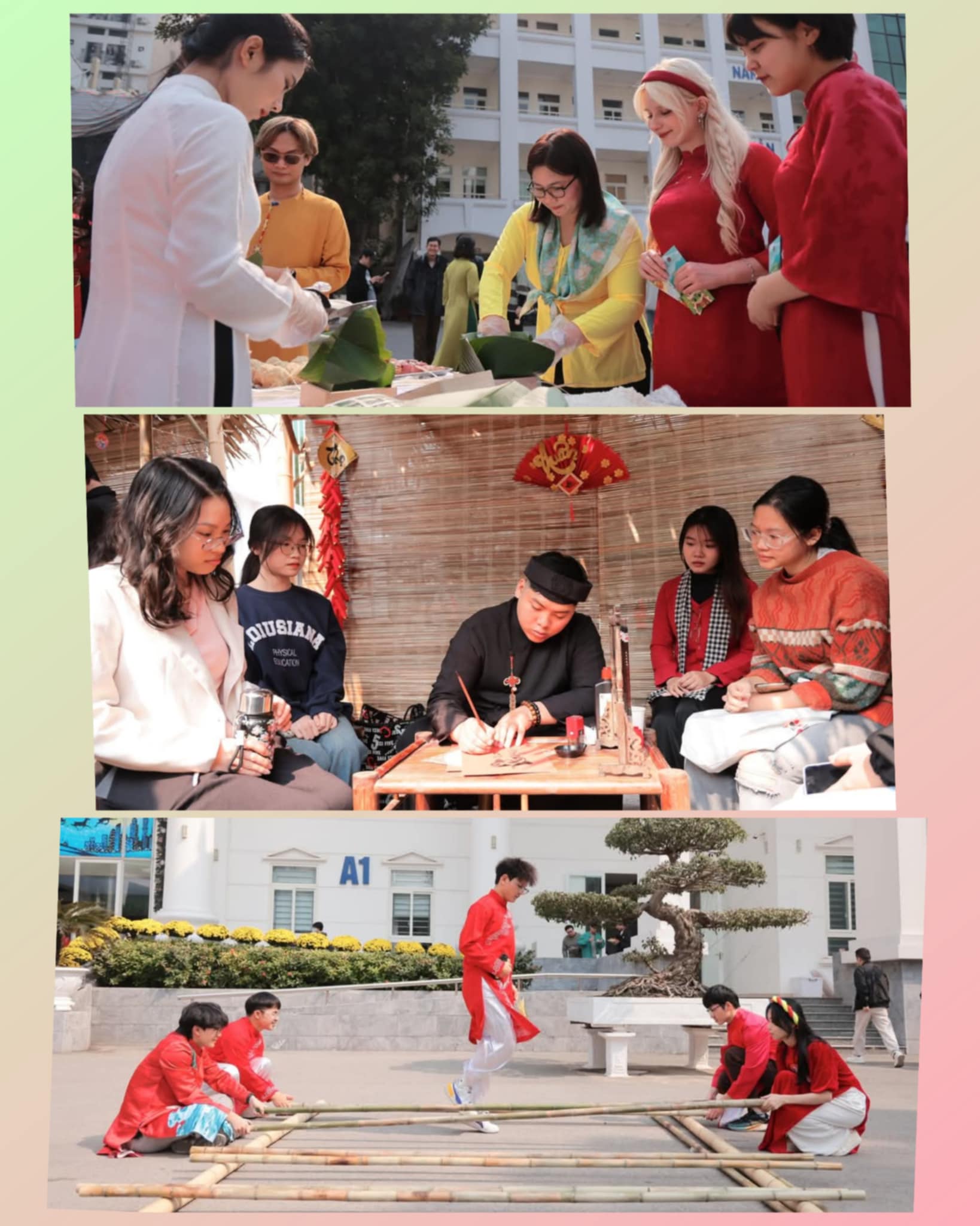 We finally reached our last stop of the near-Tet tour, Hanoi University, to join 'Tet Viet 2025.' It's the biggest annual event held by the Vietnamese Studies department for international students