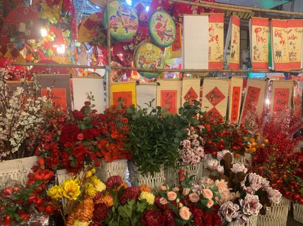 Over time, the street vendors started selling festive items for occasions like Christmas and the Mid-Autumn Festival. When we visited, the street was decked out in vibrant red for Tet. Shops were packed with classic Tet items like flowers, lì xì (red envelopes), decorative fans, lanterns, and firecrackers. In Laos, people also sell festive stuff for Lao New Year Pi Mai, but it's a bit different.