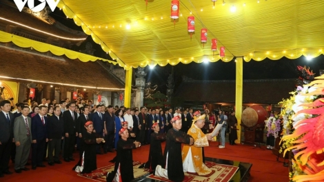 (VOVWORLD) - เมื่อค่ำวันที่ 2 มีนาคม ซึ่งตรงกับวันที่ 14 เดือนอ้ายตามจันทรคติ พิธีพระราชทานอาหารของพระมหากษัตริย์เจิ่นได้มีขึ้น ณ เขตโบราณสถานแห่งชาติพิเศษวิหารเจิ่นเถือง ตำบลเจิ่นฮึงด๋าว จังหวัดนิงบิ่งห์