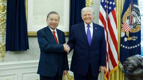 (VOVWORLD) - ในโอกาสเข้าร่วมการประชุมสภาสันติภาพเกี่ยวกับฉนวนกาซา ณ กรุงวอชิงตัน ประเทศสหรัฐ เมื่อเช้าวันที่ 20 กุมภาพันธ์ ตามเวลาท้องถิ่น เลขาธิการใหญ่พรรค โตเลิมได้พบปะกับนาย โดนัลด์ ทรัมป์ ประธานาธิบดีสหรัฐ ณ ทำเนียบขาว