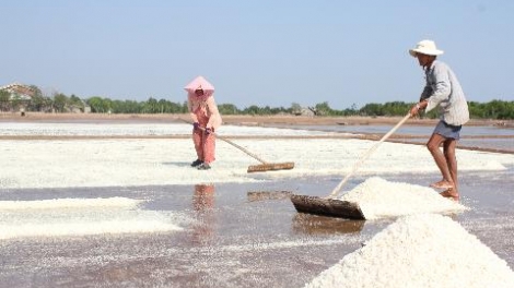 (VOVworld) - เกลือทะเลของเวียดนามเป็นเกลือที่ผลิตขึ้นโดยการนำน้ำทะเลขึ้นมาตากแดดให้น้ำระเหยไปเหลือแต่ผลึกเกลือตกอยู่