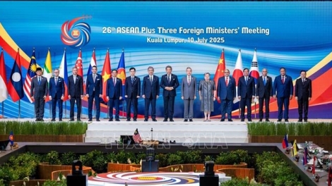 (VOVWORLD) - เมื่อวันที่ 13 กรกฎาคม ณ กรุงกัวลาลัมเปอร์ ประเทศมาเลเซีย บรรดาประเทศสมาชิกอาเซียน ร่วมกับญี่ปุ่น จีนและสาธารณรัฐเกาหลีหรือ อาเซียน+3, APT ได้ยืนยันถึงคำมั่นในการส่งเสริมการผสมผสานเข้ากับกระแสเศรษฐกิจในภูมิภาค และธำรงระบบการค้าพหุภาคีตามกฎหมายในสภาวการณ์ที่ความไร้เสถียรภาพทางเศรษฐกิจและการค้าโลกเพิ่มมากขึ้น