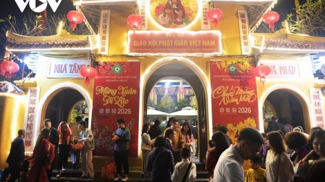 (VOVWORLD) -เมื่อค่ำวันที่16กุมภาพันธ์ในกรุงฮานอย หลังการนับถอยหลังส่งท้ายปีเก่า ปีมะเส็งเพื่อก้าวเข้าสู่ปีมะเมีย ประชาชนจำนวนมากต่างหลั่งไหลไปจุดธูปสัการะที่วัดและวิหารศักดิ์สิทธิ์หลายแห่งในกรุงฮานอย เช่น วัดเจิ๊นก๊วก วัดกว๊านซื้อ วัดฟุ๊กแค๊งหรือวัดบั่ง เพื่อจุดธูปและอธิษฐานขอพรให้ชีวิตมีความสงบสุขและเจริญรุ่งเรือง รวมถึงการเดินทางไปวันเมี้ยวก๊วกตื๋อย้าม เพื่อขอตัวอักษรที่เป็นสิริมงคลในวันปีใหม่