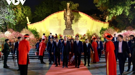 (VOVWORLD) -เมื่อค่ำวันที่ 16 กุมภาพันธ์ ซึ่งเป็นวันที่ 29 ของเดือน 12วันส่งท้ายปีเก่าปีมะเส็งตามจันทรคติ ก่อนช่วงเวลาอันศักดิ์สิทธิ์ของการเปลี่ยนผ่านระหว่างปีเก่าและปีใหม่ ท่านเลขาธิการใหญ่พรรค โต เลิม ได้ไปเยี่ยมและอวยพรปีใหม่คณะกรรมการพรรคและผู้บริหารกรุงฮานอย จุดธูปสักการะที่อนุสาวรีย์กษัตริย์ลี้ท้ายโต๋ เยี่ยมและอวยพรปีใหม่ ประชาชนกรุงฮานอยที่กำลังร่วมเฉลิมฉลองปีใหม่ ณ สวนสาธารณะลี้ท้ายโต๋