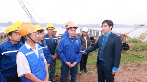 (VOVWORLD) -เมื่อวันที่ 14 กุมภาพันธ์ หรือตรงกับวันที่ 27 ของเดือน 12 ตามปฏิทินจันทรคติ นาย เหงวียนวันทั้ง ประธานสหภาพแรงงานกรุงฮานอยได้เข้าเยี่ยมให้กำลังใจและมอบของขวัญให้กับแรงงานที่กำลังก่อสร้างสะพานเวินฟุ๊กและสะพานเถืองก๊าต