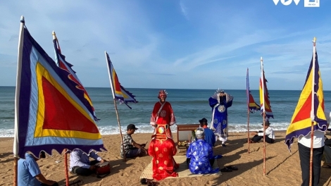 (VOVWORLD) -เทศกาลเกิ่วงือหรืองานเทศกาลเซ่นไหว้ปลาโองแห่งท้องทะเลที่มีสถานะที่สำคัญพิเศษในชีวิตทางจิตใจและความเลื่อมใสศรัทธาของชาวประมงในหมู่บ้านชาวประมงต่างๆในเขตภาคกลางตอนใต้ โดยเฉพาะจังหวัดฟู้เอียน ซึ่งแสดงให้เห็นผ่านพิธีกรรมที่เป็นเอกลักษณ์และการแสดงการร้องเพลงพื้นเมืองต่างๆ