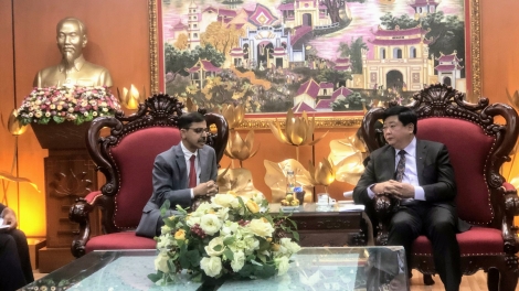 ประธานสถานีวิทยุเวียดนาม เหงียนเท้กี๋ ให้การต้อนรับเอกอัครราชทูตอินเดียประจำเวียดนาม