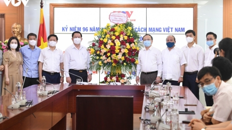 (VOVWORLD) - เช้าวันที่ 15 มิถุนายน นาย เหงียนจ่องเหงียะ หัวหน้าคณะกรรมการประชาสัมพันธ์และให้การศึกษาส่วนกลางได้เดินทางมาเยือนและอวยพรสถานีวิทยุเวียดนามเนื่องในโอกาสรำลึกครบรอบ 96 ปีวันหนังสือพิมพ์ปฏิวัติเวียดนาม 21 มิถุนายน