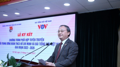 (VOVWORLD) - บ่ายวันที่ 23 พฤศจิกายน ณ กรุงฮานอย ได้มีการจัดพิธีลงนามโครงการประสานงานระหว่างสถานีวิทยุเวียดนามหรือวีโอวีกับกองเยาวชนคอมมิวนิสต์โฮจิมินห์ส่วนกลางในช่วงปี 2022-2026