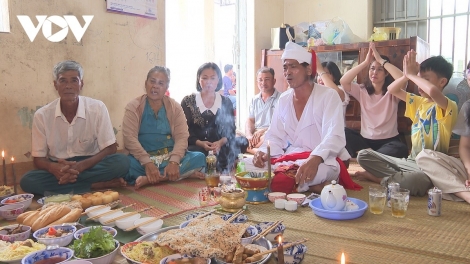 (VOVWORLD) - ชุมชนเผ่าจามมีเทศกาลและพิธีกรรมด้านความเชื่อมากมาย แต่ละงานจะมีการถวายเครื่องเซ่นไหว้ที่แตกต่างกันที่สะท้อนความปรารถนาให้ชีวิตที่ความสุข การเก็บเกี่ยวผลผลิตอุดมสมบูรณ์ และทุกครอบครัวมีความเจริญรุ่งเรือง