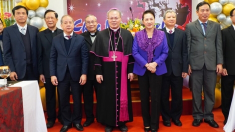 (VOVWORLD) - วันนี้ ชมรมชาวคริสต์ในเวียดนามมีความปลื้มปิติยินดีท่ามกลางการฉลองเทศกาลคริสต์มาสและเตรียมต้อนรับปีใหม่อย่างมีความสุขร่วมกับพี่น้องชาวเวียดนามในทั่วประเทศ โดยในหลายวันที่ผ่านมา คณะผู้แทนของพรรค รัฐ แนวร่วมปิตุภูมิ คณะกรรมการศาสนาของรัฐบาล รวมทั้งคณะกรรมการ หน่วยงานและท้องถิ่นต่างๆได้ไปเยี่ยมและอวยพรผู้ที่มีสมณศักดิ์และชมรมชาวคริสต์ในท้องถิ่นต่างๆ ซึ่งการฉลองเทศกาลคริสต์มาสอย่างมีความสุขและอบอุ่นท่ามกลางความชื่นมื่นและความปลื้มปิติยินดีของประชาชนทั่วประเทศเป็นการพิสูจน์อย่างเด่นชัดถึงเสรีภาพด้านความเชื่อและการนับถือศาสนาในเวียดนาม
