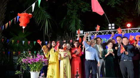 (VOVWORLD) -ค่ำวันที่ 30 มกราคม ณ กรุงเทพฯ สถานทูตเวียดนามประจำประเทศไทยได้จัดกิจกรรมฉลองตรุษเต๊ตปีมะโรง 2024 ณ สถานทูตฯ โดยมีการเข้าร่วมของชาวเวียดนามโพ้นทะเลเกือบ 300 คนที่เป็นตัวแทนของสมาคมชาวเวียดนามทุกสาขาในประเทศไทย นักศึกษาและแรงงานเวียดนามที่กำลังศึกษาและอาศัยอยู่ในประเทศไทย