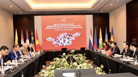 (VOVWORLD) - ในโอกาสเข้าร่วมการประชุมสมัชชาใหญ่รัฐสภาประชาชาติแห่งเอเชียตะวันออกเฉียงใต้หรือ AIPA ครั้งที่ 44 ณ กรุงจาการ์ตา ประเทศอินโดนีเซีย เช้าวันที่ 7 สิงหาคม นาย เวืองดิ่งเหวะ ประธานสภาแห่งชาติเวียดนามได้พบปะกับนาย วันมูหะมัดนอร์ มะทา ประธานสภาผู้แทนราษฎรไทย