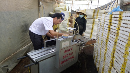 | คุณเจืองกับเครื่องหยอดเมล็ด |