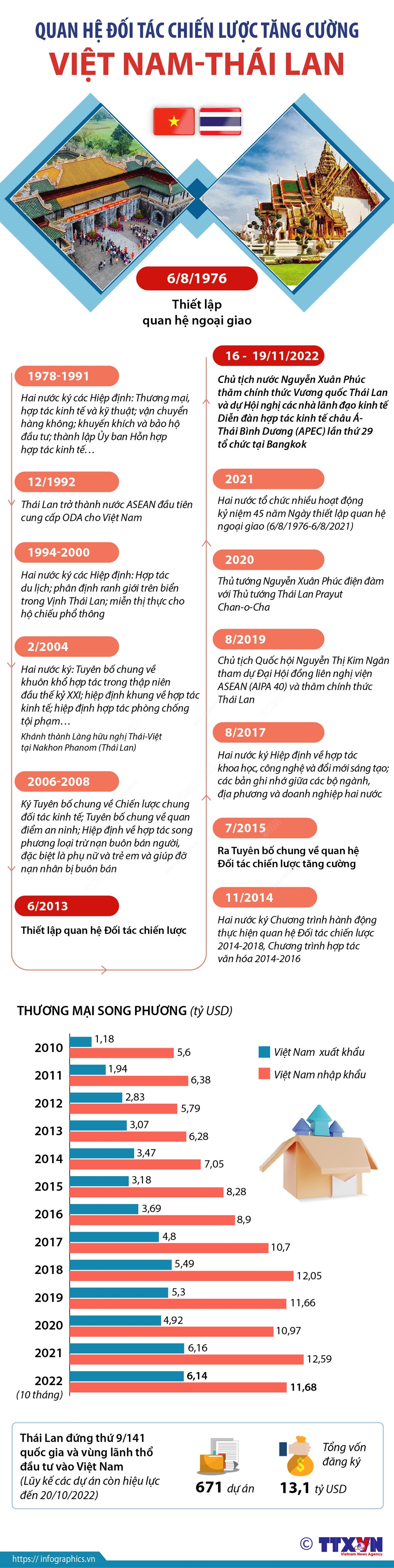 อินโฟกราฟิกเกี่ยวกับความสัมพันธ์เวียดนาม-ไทย (VNA) |