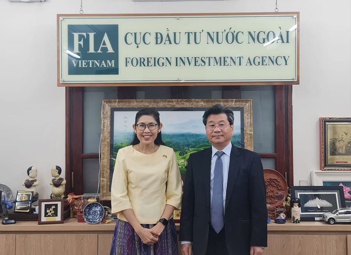 นางสาวอุรวดี ศรีภิรมย์ เอกอัครราชทูต ณ กรุงฮานอย เข้าพบและหารือกับ นาย Do Nhat Hoang อธิบดี Foreign Investment Agency (FIA) กระทรวงการวางแผนและการลงทุนเวียดนาม (FIA) เมื่อเดือนมิถุนายนที่ผ่านมา (ภาพจากสถานเอกอัครราชทูตไทย ณ กรุงฮานอย) |