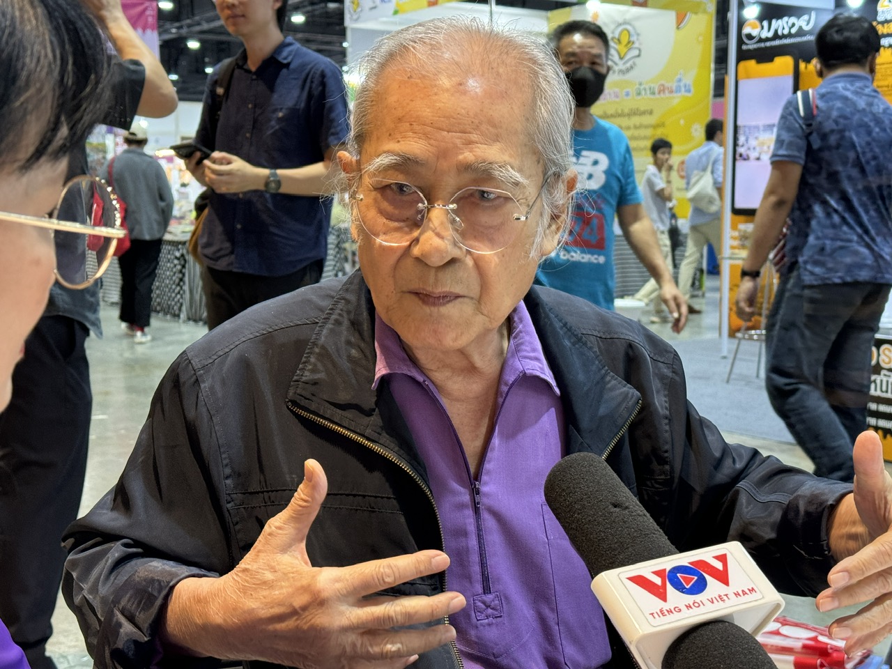 อาจารย์ เนาวรัตน์ พงษ์ไพบูลย์ให้สัมภาษณ์ผู้สื่อข่าวสถานีวิทยุเวียดนามประจำประเทศไทย |