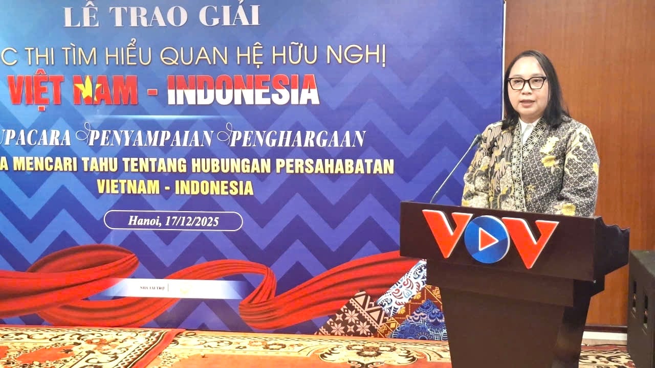 ทั้งนี้ การประกวดเกี่ยวกับความสัมพันธ์มิตรภาพเวียดนาม-อินโดนีเซียประจำปี 2025 ได้ประสบความสำเร็จอย่างงดงาม ซึ่งเปิดโอกาสมากมายสำหรับกิจกรรมความร่วมมือต่าง ๆ ในโครงการแลกเปลี่ยนด้านสื่อสารมวลชนระหว่าง VOV กับสถานเอกอัครราชทูตอินโดนีเซียในอนาคต โดยการประกวดดังกล่าวไม่เพียงแค่ให้ความรู้ที่มีคุณค่าเท่านั้น แต่ยังถือเป็นการวางรากฐานที่สำคัญสำหรับความสัมพันธ์มิตรภาพระหว่างเวียดนามและอินโดนีเซีย พร้อมทำให้ความร่วมมือระหว่างสองประเทศมีความลึกซึ้ง เป็นรูปธรรม และมีประสิทธิภาพมากขึ้น.