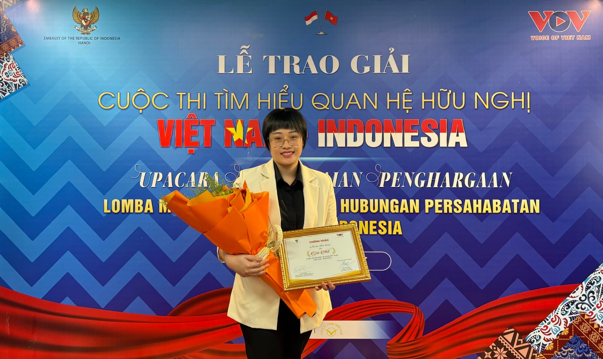 ในตลอดระยะเวลากว่า7ทศวรรษ ความสัมพันธ์ระหว่างเวียดนามกับอินโดนีเซียยังคงมีการพัฒนาในทิศทางที่ดีอย่างต่อเนื่อง จนกลายเป็นหุ้นส่วนยุทธศาสตร์อย่างรอบด้านด้วยรากฐานที่มั่นคงจากความไว้วางใจทางการเมืองและความร่วมมืออย่างมีประสิทธิภาพในหลายด้าน ตั้งแต่การเมืองและการทูต การป้องกันประเทศและความมั่นคง จนถึงเศรษฐกิจและการค้า รวมถึงการแลกเปลี่ยนทางวัฒนธรรมและความร่วมมือระดับประชาชน ซึ่งหมุดหมายแห่งความสำเร็จเหล่านั้นไม่เพียงแค่ยืนยันถึงสถานะของความสัมพันธ์ระหว่างสองประเทศเท่านั้น แต่ยังได้สร้างแรงบันดาลใจให้ VOV ร่วมกับสถานเอกอัครราชทูตอินโดนีเซีย ณ กรุงฮานอย จัดการแข่งขันในวันนี้ พวกเราเชื่อมั่นว่า เมื่อการสื่อสารมวลชน วัฒนธรรม และองค์ความรู้ได้มีการเผยแพร่อย่างกว้างขวาง สัมพันธไมตรีและความร่วมมืออย่างเป็นรูปธรรมในด้านต่างๆ จะเจริญงอกงามมากยิ่งขึ้น