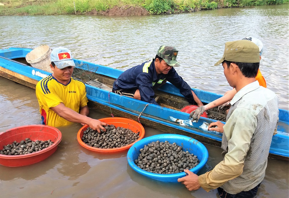 ประชาชนตำบลดงเท้ย อำเภอก๊ายเนื้อกสร้างฐานะจากการเลี้ยงหอยแครงในบ่อกุ้ง |