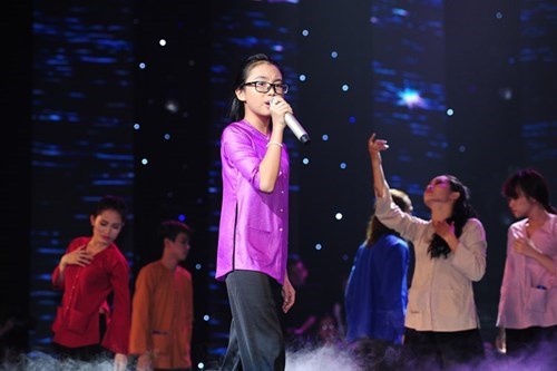 | นักร้องสาวน้อยเฟือง หมี ชีพร้อมเพลง Que em mua nuoc lu หรือ ฤดูน้ำหลากที่บ้านเกิดฉัน (Photo: baihatyeuthich.vn) |