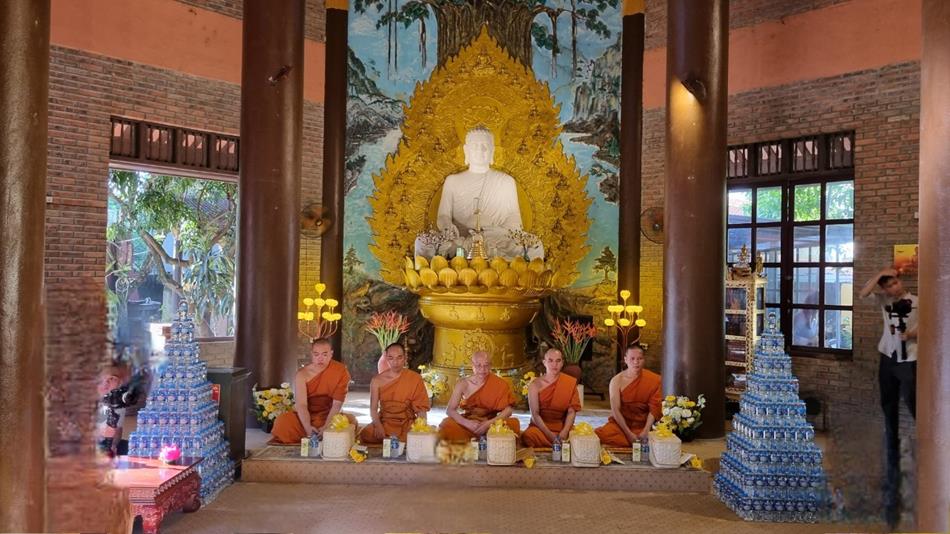 พระสงฆ์เจริญพระพุทธมนต์และถวายพระพรชัยมงคล