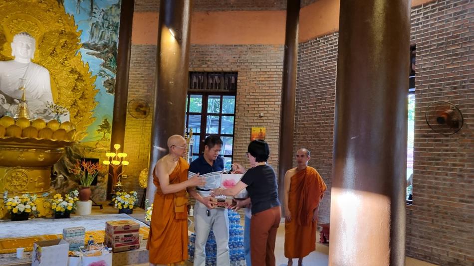พระมหาเถระ ทิกมิงตื่อ เจ้าอาวาสวัดนามเทียนมอบสิ่งของบริจาคให้แก่ครอบครัวที่ยากจนในท้องถิ่น