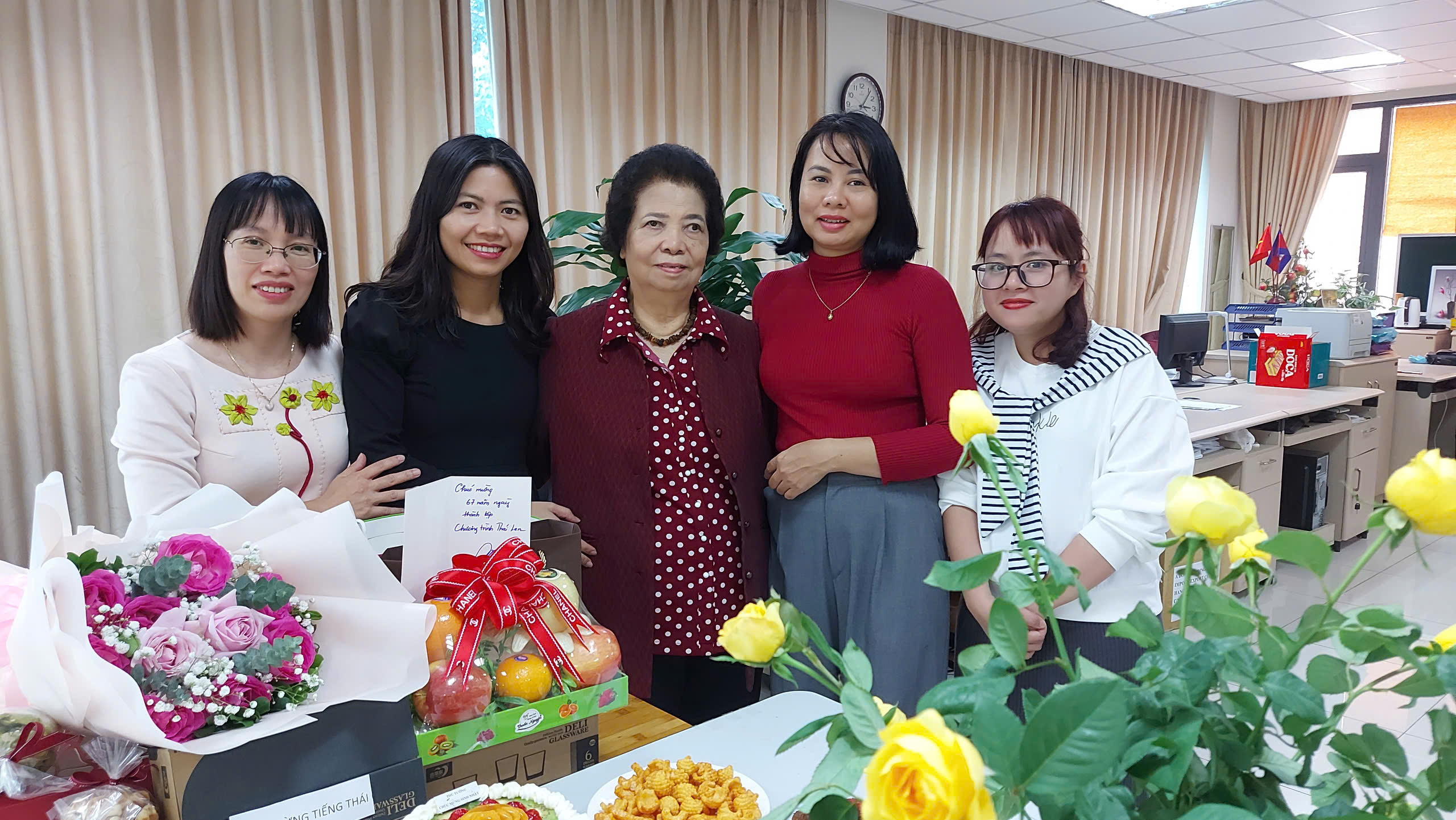 “โชคดีที่ว่า ก่อนที่ทำงานอยู่ที่ภาคภาษาไทย ก็ได้มีโอกาสพบปะสื่อสารกับผู้สื่อข่าวจากประเทศไทย เขามาดูงานอยู่ที่เวียดนาม ก็รู้จักสนิทกัน เวลาไปอยู่ที่นั่นก็ติดต่อกับพวกเขา เป็นผู้สื่อข่าว เลยมีความสะดวกอย่างหนึ่งคือ มีการประชุมอะไรเขาก็จะบอกให้เรา ข่าวที่เด่นที่สุดก็คือ ช่วงนั้น พอดีจะเป็นช่วงที่เฉลิมฉลอง25 ปีความสัมพันธ์ระหว่างเวียดนามกับไทย ป้าก็ขอติดต่อกับฝ่ายกระทรวงการต่างประเทศไทย บอกว่า ขอสัมภาษณ์ท่านรัฐมนตรีว่าการกระทรวงการต่างประเทศไทย ก็ได้รับอนุญาตแล้วป้าก็ติดต่อไปที่ฝ่ายสำนักงานผู้สื่อข่าวของไทยด้วยเพื่อช่วยเป็นอีกทางหนึ่งที่จะจัดสัมภาษณ์ท่านรัฐมนตรีต่างประเทศท่านก็ตอบรับให้สัมภาษณ์ หลังจากที่สัมภาษณ์เสร็จแล้ว ป้าก็ส่งอัดเทปมาทางบ้านทำข่าวเรียบร้อย แล้วผู้สื่อข่าวของทางเมืองไทยที่กรมประชาสัมพันธ์บอกว่า ขอเทปที่อัดเสียงของท่านรัฐมนตรีต่างประเทศไทยด้วยเพื่ออกข่าวเช่นกันเพราะท่านรัฐมนตรีกำชับว่าต่างประเทศเขามาสัมภาษณ์ออกข่าวความสัมพันธ์ระหว่างประเทศ เราเป็นประเทศเจ้าภาพก็ต้องมีข่าวด้วย”