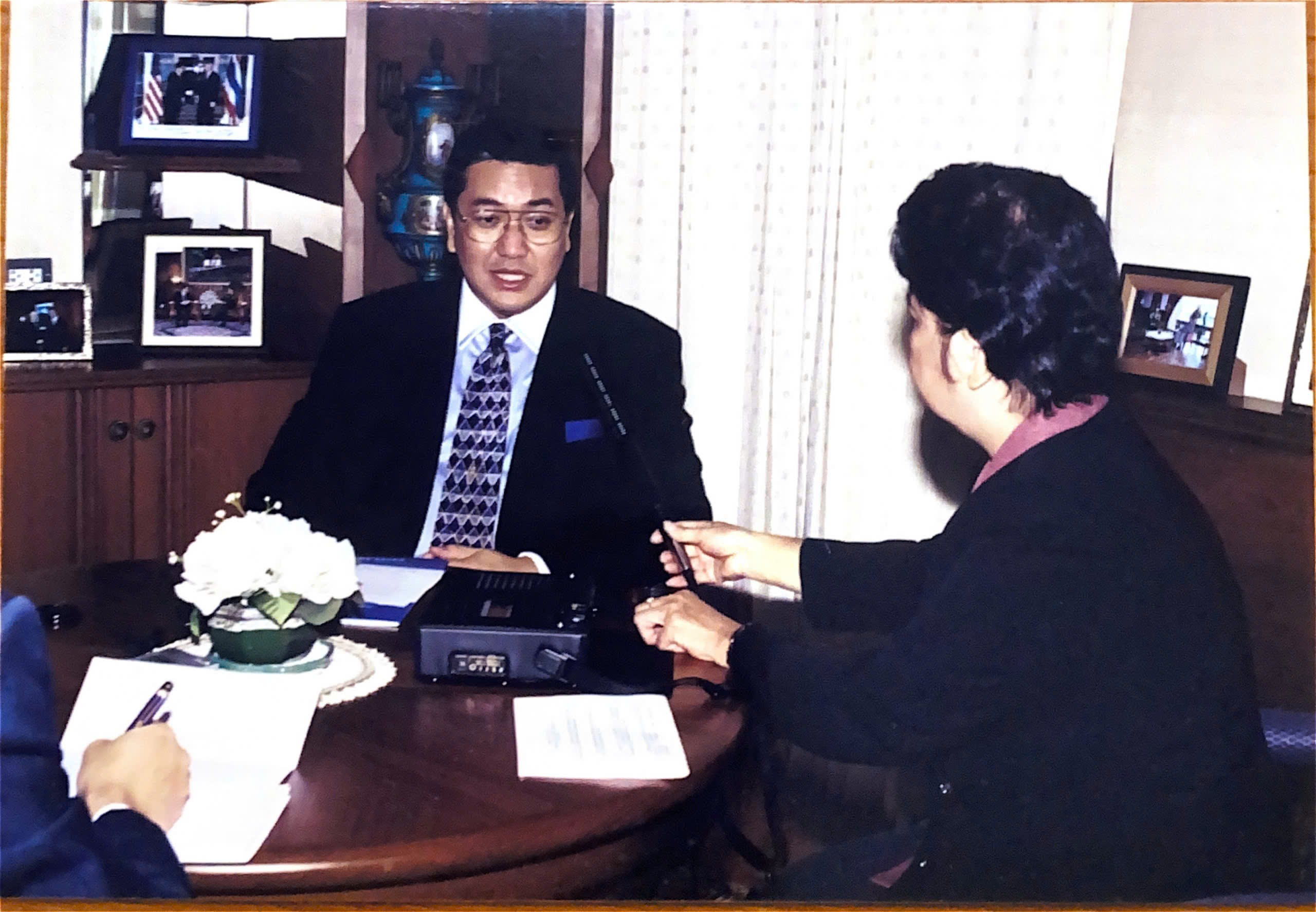 คุณเหงวียนถวี่มิงห์ สัมภาษณ์นาย สุรเกียรติ์ เสถียรไทย รัฐมนตรีว่าการกระทรวงการต่างประเทศไทยเมื่อปี 2001 |