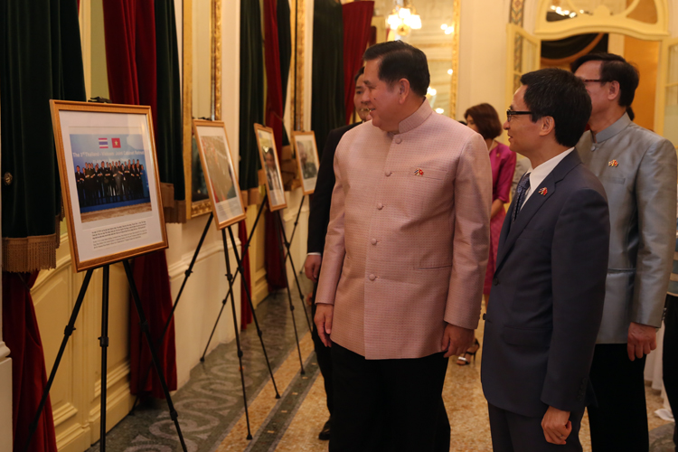 ![]() นายหวูดึ๊กดาม รองนายกรัฐมนตรีเวียดนาม (ขวา) และ พลเอก ธนะศักดิ์ ปฏิมาประกร รองนายกรัฐมนตรีไทย (ซ้าย)