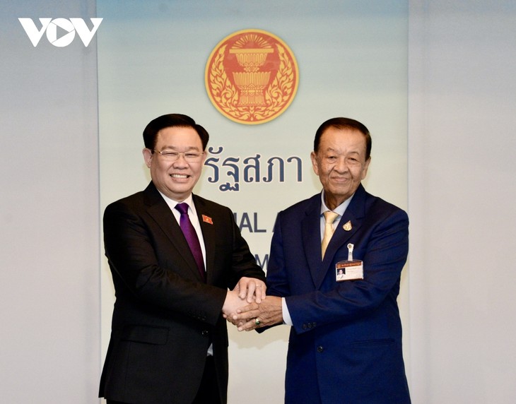 ในการพบปะระหว่างนาย เวืองดิ่งเหวะ ประธานสภาแห่งชาติเวียดนามกับผู้นำของไทยในกรอบการเยือนไทย ทั้งสองฝ่ายได้ยืนยันว่า ความร่วมมือระหว่างรัฐสภา รัฐบาลทั้งสองประเทศนับวันได้รับการพัฒนาให้เข้าสู่ส่วนลึกและจริงจัง พร้อมทั้งเห็นพ้องที่จะผลักดันความสัมพันธ์ร่วมมือทวิภาคีในทุกด้าน โดยเฉพาะด้านการค้า การลงทุนและการท่องเที่ยว รวมทั้งการยกระดับหุ้นส่วนยุทธศาสตร์เวียดนาม-ไทยให้รอบด้านในโอกาสการเยือนเวียดนามของนายกรัฐมนตรีไทยที่คาดว่า จะมีขึ้นในต้นปี 2024 ทั้งสองฝ่ายจะประสานงานเพื่อเพิ่มมูลค่าการค้าต่างตอบแทนขึ้นเป็น 2 หมื่น 5 พันล้านดอลลาร์สหรัฐตามแนวทางที่สมดุลย์มากขึ้น นี่เป็นการเยือนที่มีความหมายสำคัญในสภาวการณ์ที่ทั้งสองประเทศรำลึกครบรอบ 10 ปีความเป็นหุ้นส่วนยุทธศาสตร์