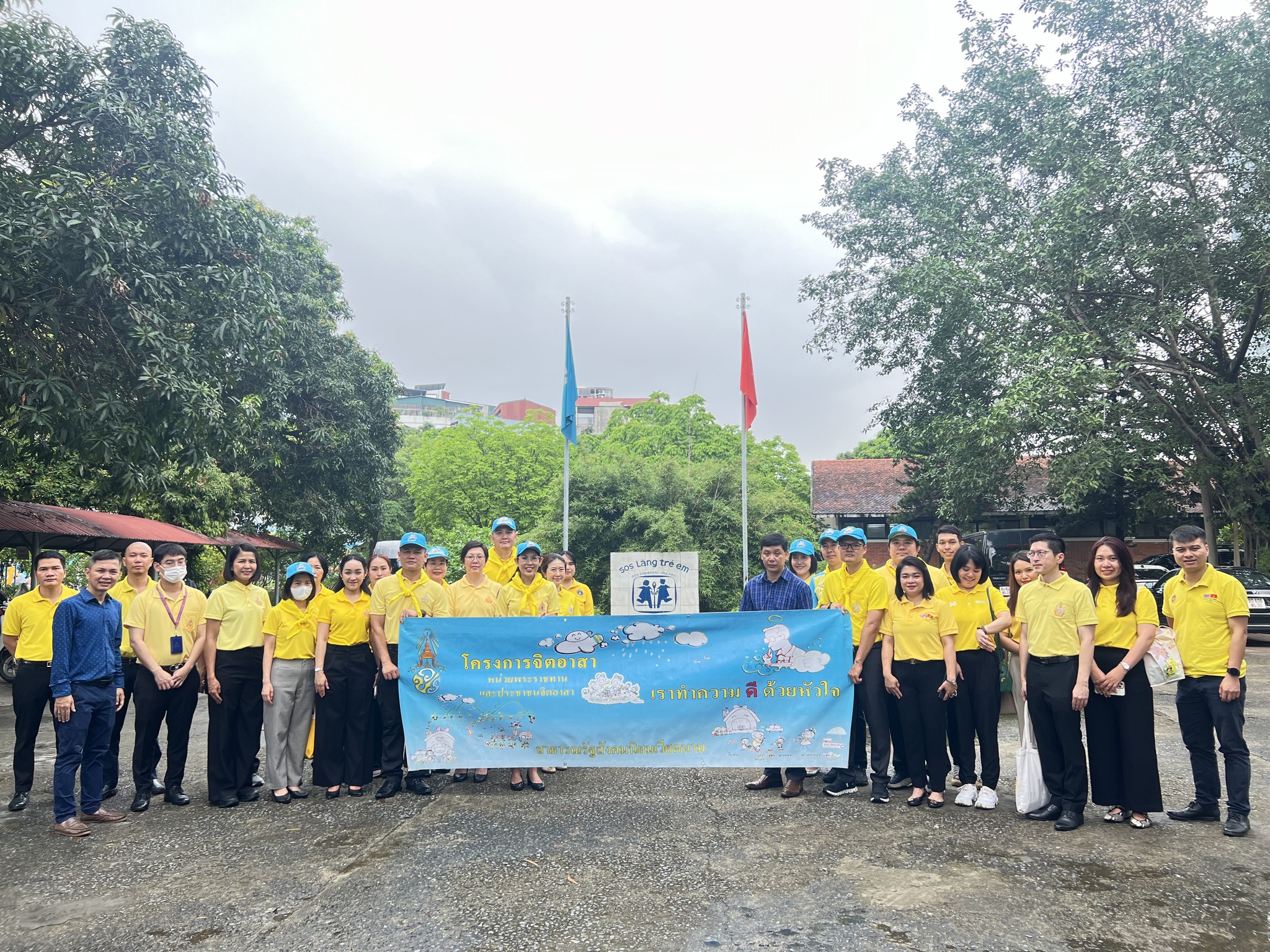 ตัวแทนของสถานทูตไทยประจำกรุงฮานอย สภาหอการค้าและอุตสาหกรรมไทยในเวียดนามหรือ ThaiCham และชุมชนไทยได้เดินทางไปเยี่ยม SOS Children's Village Hanoi ซึ่งเป็นสถานสงเคราะห์เด็กกำพร้า ในการนี้ เอกอัครราชทูตไทยและตัวแทนภาคเอกชนไทยได้มอบข้าวสาร อาหารแห้ง ขนม นม น้ำดื่ม ของเล่น อุปกรณ์กีฬา และเลี้ยงไอศครีมเด็ก ๆ ซึ่งกิจกรรมจิตอาสานี้เป็นการดำเนินตามพระบรมราโชวาทในพระบาทสมเด็จพระเจ้าอยู่หัว ในการบำเพ็ญสาธารณะประโยชน์ไม่ว่าจะอยู่ในประเทศใด โดยไม่หวังสิ่งตอบแทน เป็นการแสดงความเมตตา ความปรารถนาดีของชาวไทยมายังเด็ก ๆ เวียดนาม เพื่อเติบโตเป็นคนที่มีคุณค่าของสังคม ส่วนที่นครโฮจิมินห์ สถานกงสุลใหญ่ไทย ณ นครโฮจิมินห์ได้จัดกิจกรรมจิตอาสา บริจาคทุนทรัพย์ให้แก่สมาคมช่วยเหลือผู้ป่วยยากไร้นครโฮจิมินห์ เพื่อช่วยเหลือผู้ป่วยโรคหัวใจในนครโฮจิมินห์ ทั้งนี้ ทุนทรัพย์ดังกล่าวได้มาจากการขายสลากสอยดาวชิงรางวัลในงานเทศกาลไทยที่ผ่านมา ณ นครโฮจิมินห์ ซึ่งสถานกงสุลใหญ่ฯ ได้รับการสนับสนุนของรางวัลจาก ThaiCham และภาคเอกชนไทยในเขตกงสุล
