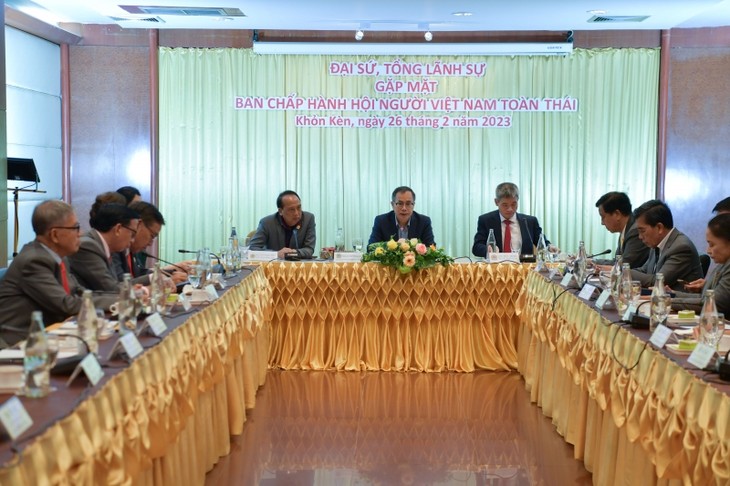 สถานทูตเวียดนามประจำประเทศไทยและสถานกงสุลใหญ่เวียดนามประจำจังหวัดขอนแก่นได้จัดการพบปะและประชุมกับคณะผู้บริหารของสมาคมชาวเวียดนามแห่งประเทศไทยสาขาจังหวัดขอนแก่นเพื่อรับฟังความคิดเห็นและความปรารถนาของชุมชนชาวเวียดนามในประเทศไทยต่อสำนักงานตัวแทนเวียดนามในประเทศไทย ความคิดเห็นเหล่านี้จะเป็นพื้นฐานเพื่อเสริมสร้างและสร้างสรรค์ชุมชนชาวเวียดนามในประเทศไทยที่เข้มแข็งและสามัคคี ในการพบปะ บรรดาผู้แทนได้แสดงความคิดเห็นต่องานของสมาคมฯ ความร่วมมือทางเศรษฐกิจระหว่างท้องถิ่นต่างๆภายในประเทศกับนักธุรกิจชาวไทยเชื้อสายเวียดนามและคนรุ่นใหม่ระหว่างสองประเทศ อีกทั้ง ชื่นชมการประสานงานและการช่วยเหลือของสำนักงานตัวแทนเวียดนามในประเทศไทยต่อทางสมาคมฯเพื่อสร้างสรรค์สมาคมฯให้มีความสามัคคี เข้มแข็งและพัฒนา