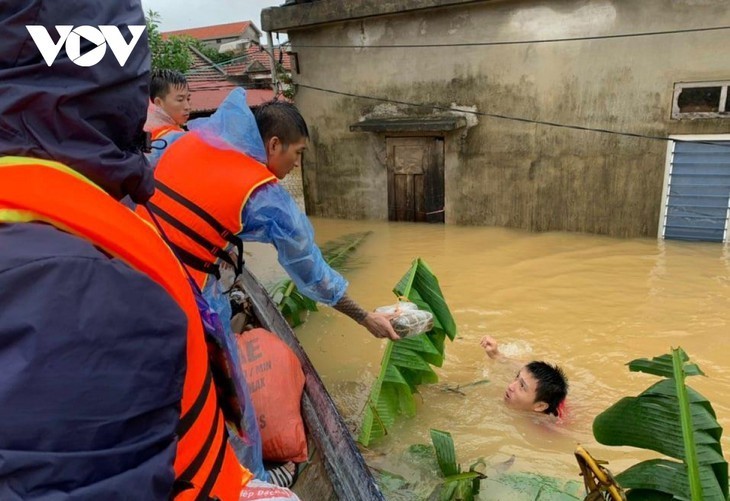 เหตุอุทกภัยในจังหวัดต่างๆทางภาคกลางกำลังเป็นที่สนใจจากประชาชนเวียดนามทั้งภายในและต่างประเทศ โดยกระทรวง หน่วยงานที่เกี่ยวข้องและท้องถิ่นต่างๆได้ประสานงานกันในการรับมือและแก้ไขปัญหาต่างๆที่เกิดขึ้นเพื่อให้การช่วยเหลืออย่างพร้อมเพรียงและพยายามลดความเสียหายให้เหลือน้อยที่สุด ในหลายท้องถิ่น แม้จะมีแผนการไว้ก่อนแล้ว แต่เนื่องด้วยสถานการณ์ภัยธรรมชาติได้เป็นไปอย่างซับซ้อน ทางการท้องถิ่นก็ได้ระงับการจัดการประชุมใหญ่พรรคสาขาทุกระดับชั่วคราวเพื่อระดมกำลังต่องานด้านการป้องกันและแก้ไขเหตุอุทกภัยที่เกิดขึ้น งานด้านการช่วยเหลือผู้ประสบภัยได้รับการปฏิบัติอย่างต่อเนื่อง ตามรายงานของสำนักงานคณะกรรมการแห่งชาติเกี่ยวกับการรับมือภัยธรรมชาติและการค้นหากู้ภัยเมื่อวันที่ 10 ตุลาคมที่ผ่านมา ในเวลาอันสั้น กองทัพภาคที่ 4 และภาคที่ 5 และทหารชายแดนได้ส่งทหารเกือบ 9 พันนาย ยานพาหนะ 200 คันไปสนับสนุนการช่วยเหลือของหน่วยกู้ภัยในท้องถิ่น โดยได้ช่วยเหลือชาวประมงและลูกเรือที่ประสบภัยในเขตทะเลเกื๋อเหวียดในจังหวัดกว๋างจิเมื่อวันที่ 8 ตุลาคม เช่น เรือ Vietship TK 12 เรือ Vietship 09 เรือVietship 01 เรือ Hoàng Tuấn 26 เรือThanh Thành Ðạt 55 และเรือThanh Thành Ðạt 68 ต่อมา เมื่อวันที่ 19 ตุลาคม ได้ช่วยเหลือผู้โดยสาร 18 คนที่มากับรถโดยสารเลขทะเบียน 43B - 024.54 ที่ประสบเหตุน้ำท่วมในอำเภอโบ๋แจก จังหวัดกว๋างบิ่ง แต่อย่างไรก็ตาม เหตุอุทกภัยและปัญหาดินถล่มได้สร้างความเสียหายอย่างหนัก