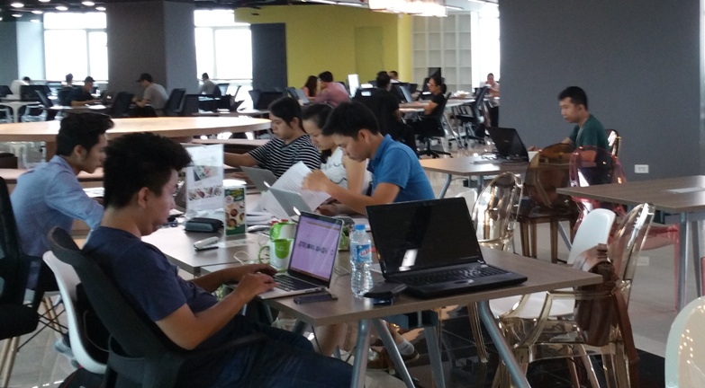 ภาพการทำงานของบริษัทสตาร์ทอัพที่ UP Co-working Space (VGP) |