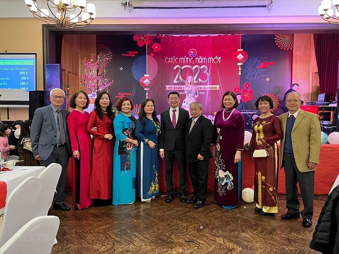ส่วนที่สโลวาเกีย เมื่อวันที่ 21 มกราคม สถานเอกอัครราชทูตเวียดนามประจำสโลวาเกียได้ร่วมมือกับสมาคมชาวเวียดนามจัดงานฉลองปีใหม่ประเพณีในเมืองหลวงบราติสลาวาและเมืองโคซิเซของสโลวาเกียในบรรยากาศที่อบอุ่น สนุกสนาน และเปี่ยมด้วยเอกลักษณ์วัฒนธรรมดั้งเดิมของชาติ.