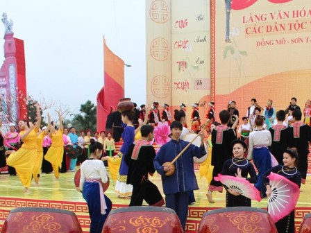 ( VOVworld )-ในช่วงตรุษเต็ตตามประเพณีของเวียดนาม ที่หมู่บ้านวัฒนธรรมและการท่องเที่ยวของชนเผ่าต่างๆในเวียดนามได้มีการจัดงานเทศกาล “ สีสันแห่งวสันต์ในทั่วทุกแห่งของประเทศ ” โดยย้อนอดีตเทศกาลที่โดดเด่นของชนเผ่าต่างๆจึงทำให้ประชาชนและนักท่องเที่ยวจากทั่วสารทิศหลั่งไหลมาเที่ยวบ้านแห่งชนชาติ ๕๔ ชนเผ่าในเวียดนามอย่างไม่ขาดสาย งานเทศกาลมีชนเผ่าจากจังหวัดเขตเขาตอนบนของเวียดนามเข้าร่วมด้วยรายการต่างๆไม่ว่าจะเป็นรายการเสียงเพลงสรรเสริญพรรคและต้อนรับวสันต์ เทศกาลหล่ง ต่งหรือแรกนาขวัญของชนเผ่าไต เทศกาลรำกลองฉลองปีใหม่ของชนเผ่าไย้และเทศกาลขอให้คลาดแคล้วจากภัยพิบัติต่างๆของชนเผ่าไท นอกจากนี้ยังมีกิจกรรมศิลปะต่างๆไม่ว่าจะเป็นการร้องเพลงพื้นบ้าน การระบำ การละเล่นพื้นเมือง อาหารพื้นเมืองและการกีฬาชนเผ่าเช่น รำแสว่ว การตีฆ้อง รำกระทบไม้ การเดินขาต่อ การโยนลูกบอลลอดห่วง โล้ชิงช้า คุณป้าดินห์ เฮือง หญ่าย ที่อาศัยในเขตด๊ง ดา ในกรุงฮานอยกล่าวว่า “ ดิฉันเป็นคนเวียดนามจึงอยากศึกษาค้นหาชนเผ่าพี่น้องและชนเผ่าอื่นๆ อีกทั้งอยากศึกษาว่า ชนเผ่าต่างๆในประเทศมีงานเทศกาลที่โดดเด่นอะไรบ้าง มาที่นี่รู้สึกสนุกมาก ” เทศกาล “ สีสันแห่งวสันต์ในทั่วทุกแห่งของประเทศ ” จะจัดไปจนถึงวันที่ ๑๕ กุมภาพันธ์นี้ .