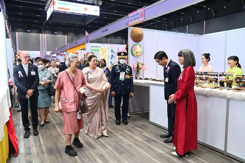 สมเด็จพระกนิษฐาธิราชเจ้า กรมสมเด็จพระเทพรัตนราชสุดาฯ สยามบรมราชกุมารี ได้เสด็จพระราชดำเนินไปทรงเปิดงานและทรงเยี่ยมร้าน (VNA) |