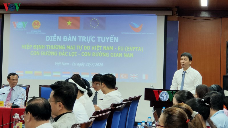 ฟอรั่มนี้ถูกจัดโดยสถานีวิทยุเวียดนาม สมาพันธ์สถานประกอบการเวียดนามในยุโรป คณะกรรมการแห่งชาติเกี่ยวกับชาวเวียดนามที่อาศัยในต่างประเทศสังกัดกระทรวงการต่างประเทศ โดยมีตัวแทนของหน่วยงานต่างๆ สถานประกอบการเกือบ 100 แห่งของกรุงฮานอย บิ่งเฟือก นครโฮจิมินห์ ประเทศต่างๆในยุโรปและโลกเข้าร่วม ในการกล่าวปราศรัยในฟอรั่ม เอกอัครราชทูตและหัวหน้าคณะกรรมการแห่งชาติเกี่ยวกับชาวเวียดนามที่อาศัยอยู่ในต่างประเทศ เลืองแทงหงิ ได้ชื่นชมวีโอวีที่จัดฟอรั่มนี้ “นี่คือกิจกรรมที่มีความหมาย เป็นโอกาสเพื่อให้สถานประกอบการกว่า 90 แห่งภายในประเทศและสถานประกอบการจาก 16 ประเทศในยุโรปเข้าร่วมฟอรั่มวันนี้เพื่อหารือ แลกเปลี่ยนข้อมูลเกี่ยวกับอุปสรรคและความสะดวกในกระบวนการลงทุน ประกอบธุรกิจ เพื่อจัดทำแผนการปฏิบัติอีวีเอฟทีเอ ข้อเสนอและมาตรการที่พวกเรากล่าวถึงวันนี้จะเป็นพื้นฐานเพื่อให้ท้องถิ่น สมาพันธ์สถานประกอบการและชุมชนเข้าถึงข้อตกลงเอฟทีเอฉบับใหม่ด้วยมาตรฐานที่เข้มงวดมากขึ้น”