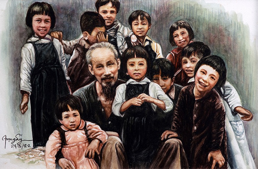 “หลังจากที่อนุสรณ์สถานประธานโฮจิมินห์ในจังหวัดนครพนมได้รับการก่อสร้างแล้วเสร็จ ผมเริ่มวาดภาพประธานโฮจิมินห์และมอบให้แก่สมาคมเวียดนาม-ไทยสาขาจังหวัดต่างๆ ซึ่งภาพวาดประธานโฮจิมินห์แสดงให้เห็นถึงความเคารพรักของผมต่อท่าน ซึ่งเป็นผู้นำที่นำความอิ่มหนำผาสุก เสรีภาพและประชาธิปไตยให้แก่ประชาชาติเวียดนาม”