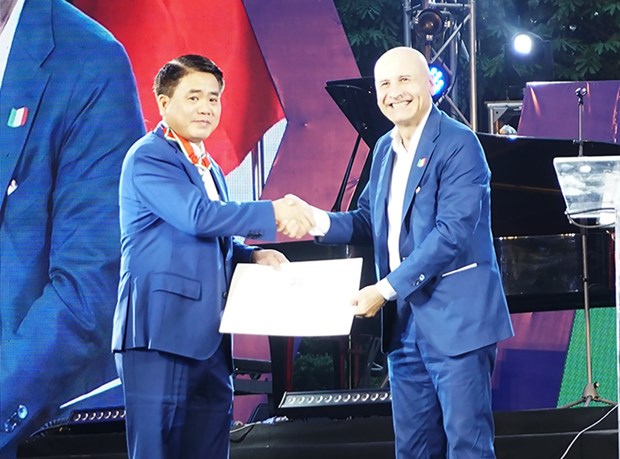 ในโอกาสนี้ ในนามของประธานาธิบดีอิตาลี นาย อันโตนิโอ อะเล็กซันโดร เอกอัครราชทูตอิตาลีประจำเวียดนามได้มอบเครื่องอิสริยาภรณ์แห่งสาธารณรัฐอิตาลีให้แก่นาย เหงียนดึ๊กจุง ประธานคณะกรรมการประชาชนกรุงฮานอยเนื่องจากได้มีส่วนร่วมเป็นอย่างมากต่อการขยายความสัมพันธ์ระหว่างสองประเทศและการพัฒนาของประเทศอิตาลี