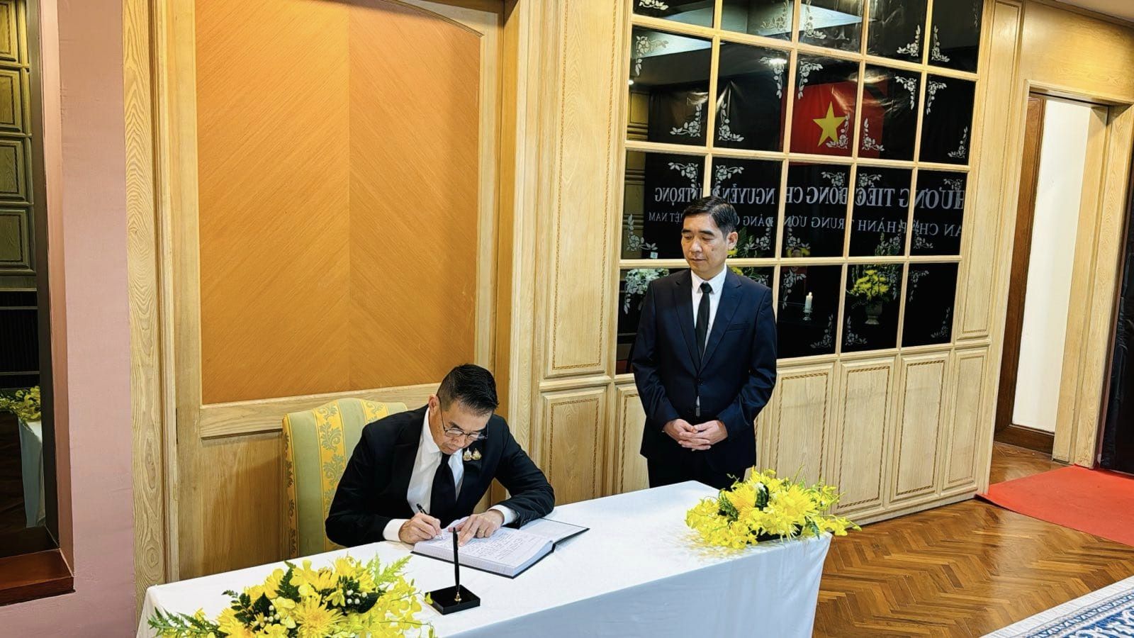 ผู้สื่อข่าววิทยุเวียดนามประจำประเทศไทยรายงาน ในข้อความที่เขียนในสมุดไว้อาลัย รัฐมนตรีต่างประเทศ มาริษ เสงี่ยมพงษ์ ได้ย้ำว่า ชาวเวียดนามและเพื่อนมิตรต่างประเทศจะระลึกถึงท่านเลขาธิการใหญ่ เหงวียนฟู้จ่อง ในฐานะของผู้นำที่มีความมุ่งมั่นเด็ดเดี่ยวและมีสติปัญญาที่ยอดเยี่ยม ผู้ที่อุทิศทั้งชีวิตเพื่อการพัฒนาและความเจริญรุ่งเรืองของประเทศและประชาชนเวียดนาม ดอกผลในตลอดชีวิตของท่านเลขาธิการใหญ่พรรคเหงวียนฟู้จ่องได้ช่วยนำประเทศเวียดนามพัฒนาก้าวหน้าไปอย่างรวดเร็วดั่งทุกวันนี้ รัฐมนตรีต่างประเทศ ไทยยังได้ย้ำถึงบทบาทที่สำคัญและสูงส่งของท่านเหงวียนฟู้จ่อง ในการเยือนราชอาณาจักรไทยครั้งประวัติศาสตร์เมื่อปี 2013 ซึ่งได้มีการยกระดับความสัมพันธ์ระหว่างไทยและเวียดนามให้ขึ้นสู่การเป็นหุ้นส่วนทางยุทธศาสตร์และช่วยส่งเสริมความร่วมมือในทุกสาขาระหว่างทั้งสองฝ่าย.