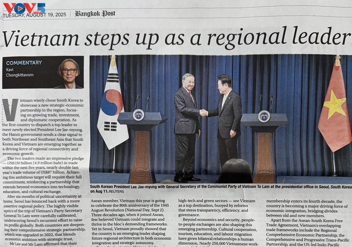 ส่วนเว็บไซต์ Bangkok Post ได้ลงบทความที่พาดหัวว่า “เวียดนามเป็นประเทศนำหน้าในภูมิภาค” โดยนักข่าว Kavi Chongkittavorn ได้ย้ำว่า เวียดนามได้ปรับปรุงและค้ำประกันบรรยากาศสันติภาพ นับวันเข้าร่วมระบบห่วงโซ่อุปทานโลกอย่างกว้างลึก โดยนักลงทุนต่างชาติในด้านเทคโนโลยีขั้นสูงและการพัฒนาสีเขียวกำลังถือเวียดนามเป็นจุดหมายปลายทางที่น่าสนใจเนื่องจากมีบรรยากาศการลงทุนและประกอบธุรกิจที่โปร่งใสและธรรมาภิบาลที่มีประสิทธิภาพ.
