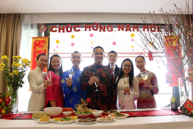 (VOVworld) - ท่ามกลางบรรยากาศที่คึกคักของตรุษเต๊ดประเพณีปีวอก 2016 บรรดาเจ้าหน้าที่สถานเอกอัครราชทูตประเทศต่างๆ ประจำเวียดนาม ได้แก่ แคนาดา อังกฤษ เดนมาร์ก นิวซีแลนด์ เปรู สวีเดน ออสเตรเลีย ปาเลสไตน์ และ สหรัฐอเมริกา ได้แสดงคำอวยพรเพื่อต้อนรับวันปีใหม่ตามปฏิทินจันทรคติของชาวเวียดนามในหลายๆ รูปแบบ เช่น ร้องเพลงเวียดนาม อ่านกวีอวยพรปีใหม่ หรือ หัดเขียนตัวอักษรมงคลและอักษรวิจิตร ฯลฯ ซึ่งแทนความหวังเป็นอย่างยิ่งต่อสัมพันธ์ไมตรีอันดีงามที่นับวันได้พัฒนามากขึ้น.